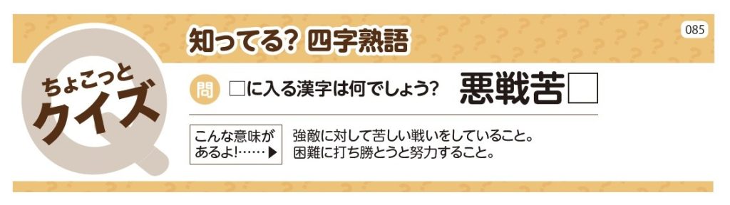 こんな意味があるよ! 強敵に対して苦しい戦いをしていること。困難に打ち勝とうと努力すること。 正解は… ↓ ↓ ↓...