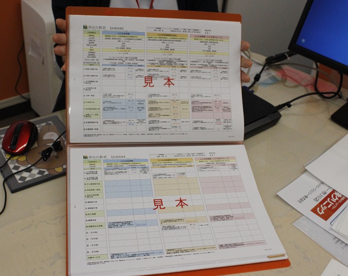 各社の保険商品を同じフォーマットで比較できる保険クリニックオリジナルの「比較表」は、各社の違いが一目瞭然で分かりやすいと好評なんですよ。
