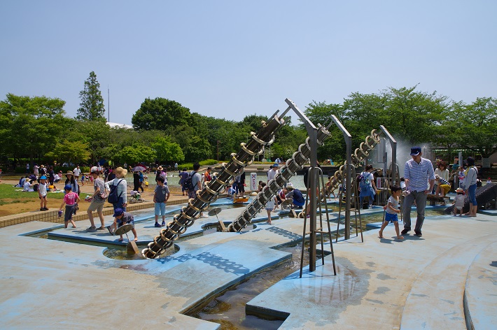 53.7haの広い園内の中にある、「水の広場」がじゃぶじゃぶ池。