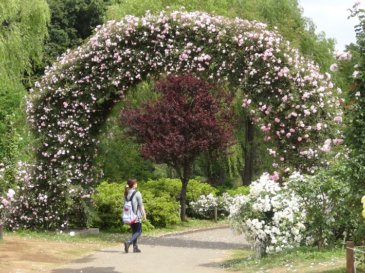 近くによってみると、バラのいい香りも漂ってきます。この大アーチの真ん中で両手を広げて撮影しても、映えますよね!