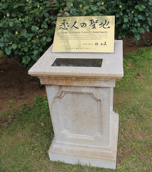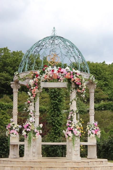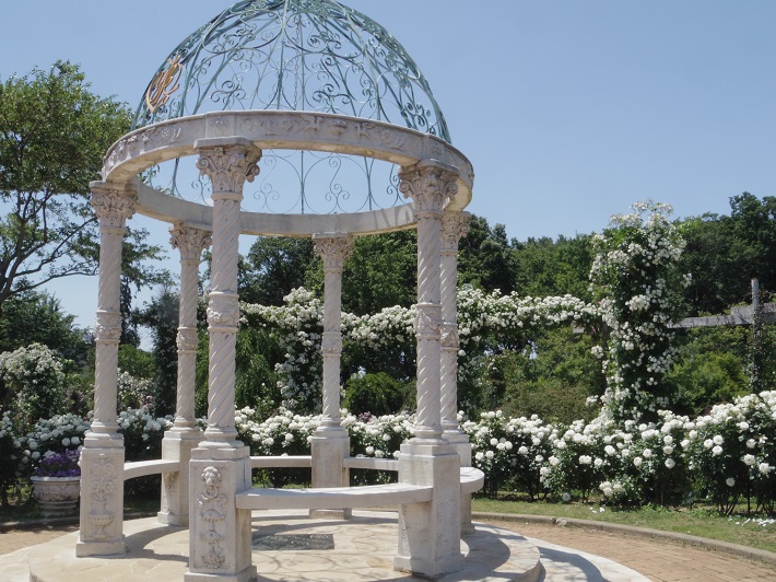 結婚式も行える「愛のガゼボ」。デザイナーの桂由美さんが寄贈された大理石でできたガゼボです。
