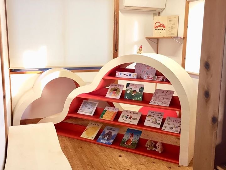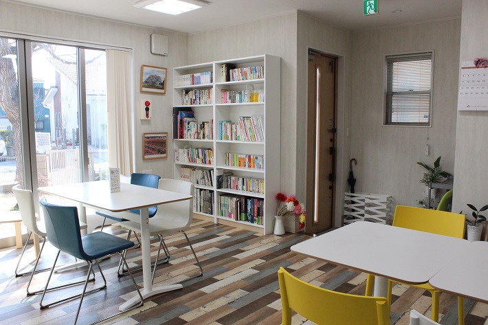 奥にはちょっとしたカフェスペースもあり、雑誌や絵本などの貸し出しも行っています。