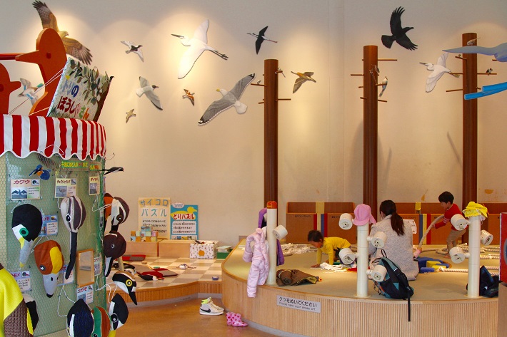 キッズスペースには干潟に生息する生き物をモチーフにしたおもちゃがあり、遊びを通じて自然に親しめます。