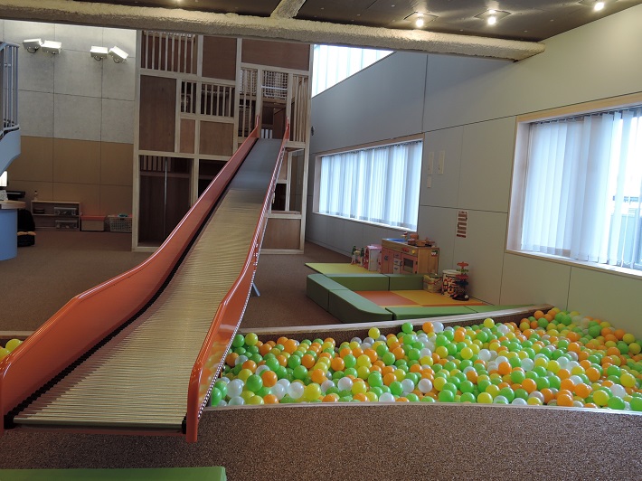 「まだオープンしたばかりで比較的空いています! 大きな滑り台があり、室内だけど公園のように体を動かせますよ。