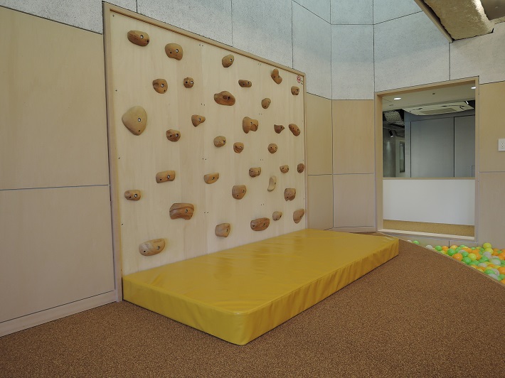このフロア内にある「チコル☆パーク」は、アスレチックや大型滑り台、ボールプール、ボルダリングなどがあり、0歳から身長130cmまでの幅広い年齢の子どもがたっぷり遊べるスペースです。