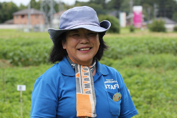 「甘くておいしいと評判でリピーターの方がたくさんいらっしゃいます。無農薬でやっていますので雑草との戦いです(笑)」と話すのは、成田ゆめ牧場園芸スタッフの平田末美(すえみ)さん。