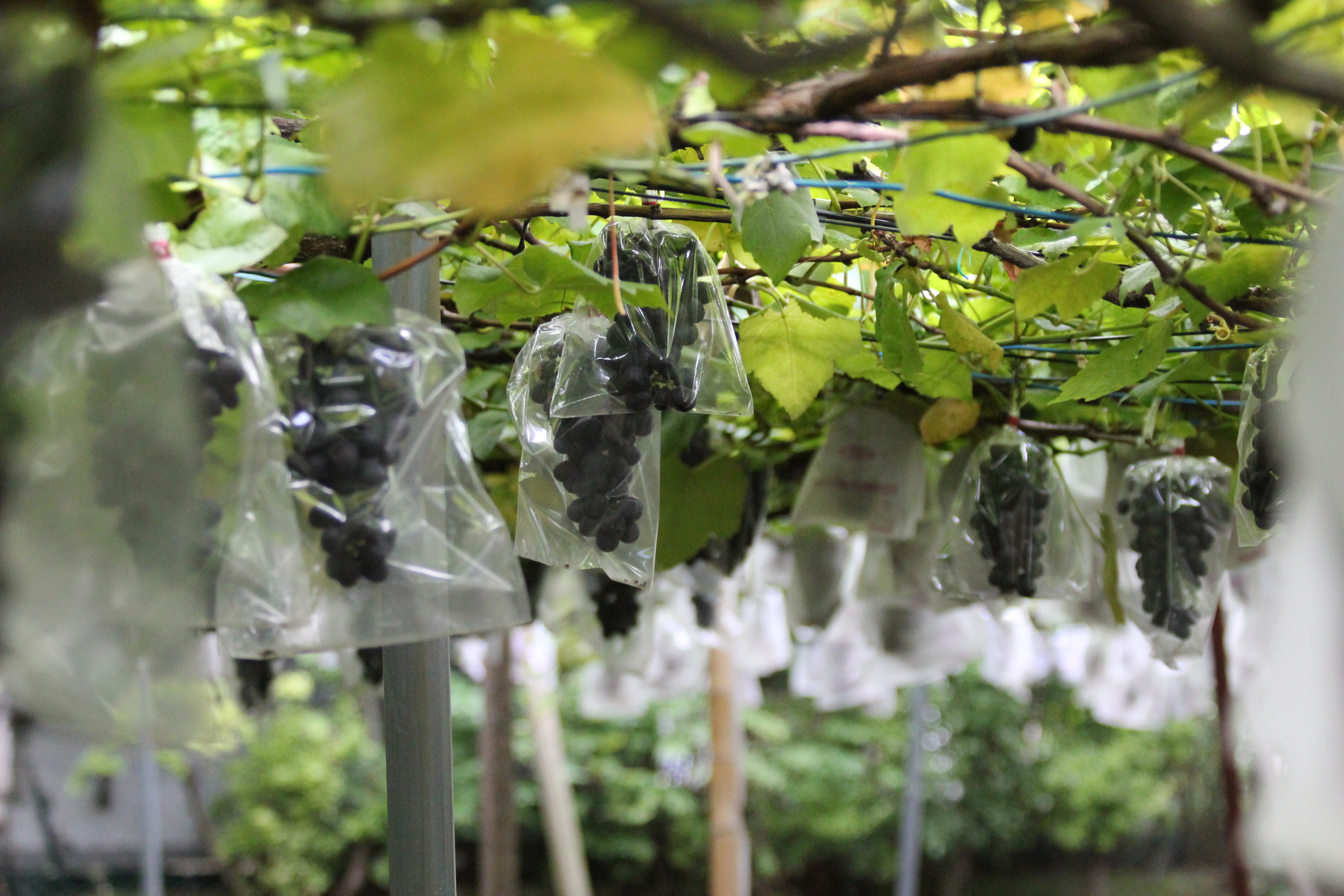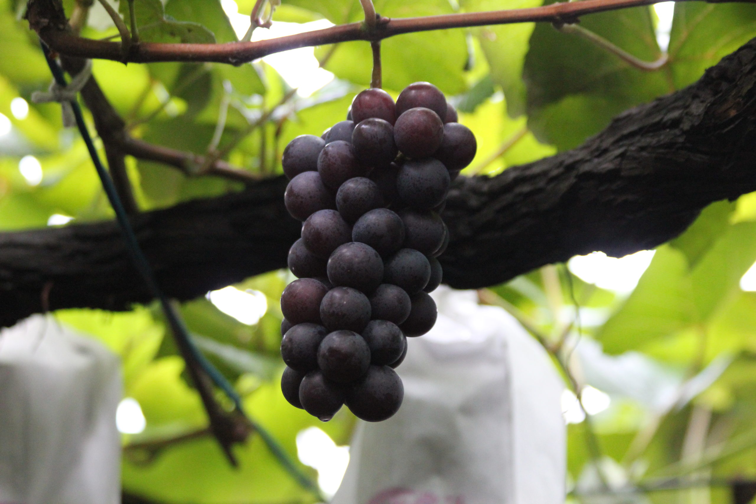 (写真の品種はバッファロー。ぶどうは、木を植えてから実が採れるまで4~5年かかりますが、その後は、40年50年たっても採れ続けるというから驚きです!)