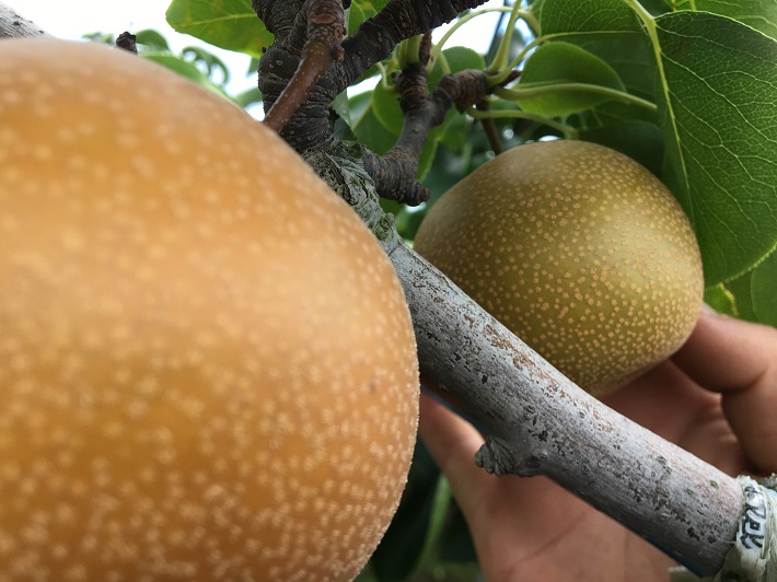 キウイやバナナは、早採りして追熟させたりしますが、梨は枝についている状態じゃないとおいしくならないんです。