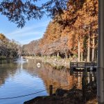 水面に映るメタセコイアの美しい景色を楽しむことができ、のんびり過ごすのにぴったり。また、アスレチック遊具が設置されたエリアで遊んだり、レジャーシートを敷いてピクニックを楽しむのも◎。