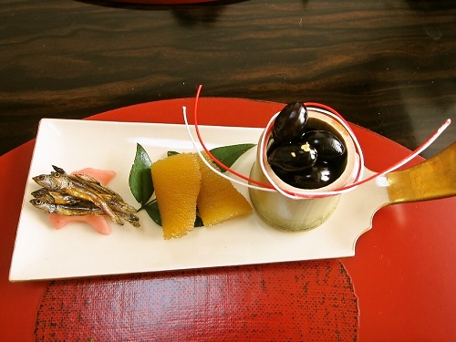 小皿には汁気があるものやバラバラになりやすいもの(黒豆やなますなど)を盛り付けます。