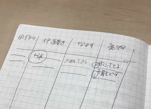 メモ用紙などに横軸にメニュー名、縦軸に各メニューの工程を箇条書きにします。