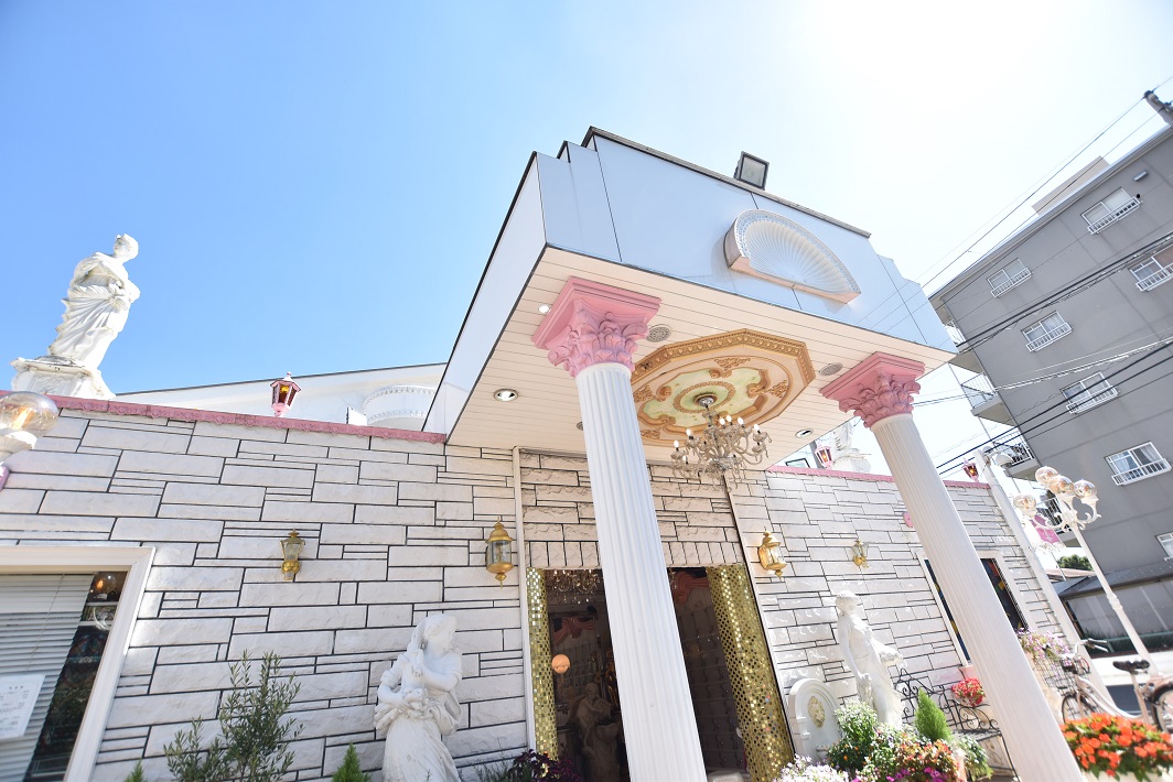 船橋市薬円台4丁目にある「クアパレス」。最寄り駅の新京成線「習志野駅」からは徒歩7分ほどです。住宅街の中で輝く、ベルサイユ宮殿のような建物。ここが「クアパレス」です。