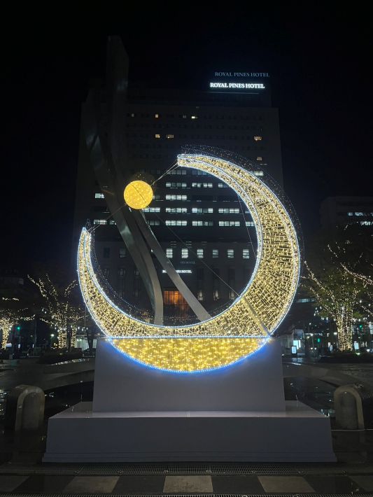 中央公園は、樹木への装飾と動きのあるスノーフォールライトにより、華やかに彩ります。さらに千葉開府900年の機運醸成のため月星をイメージしたオブジェを配置します。