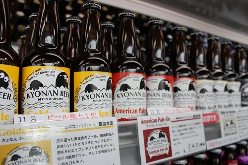 地元の鋸南麦酒や九十九里のオーシャンビールなど地ビールもたくさん種類があり、お土産としてだけでなく、宿泊しているお客さまが、飲み比べを楽しんだりしているそう。