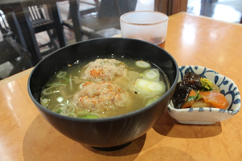 熱々の汁に、とても大きくて食べ応えのあるつみれが二つ入っています。