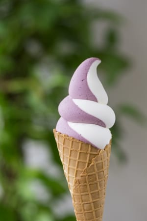 味は、ミルク、ブルーベリー、ピーナッツ、ミルク×ブルーベリー(写真)、ミルク×ピーナッツ(各400円)、ピーナッツチョコ(450円)の6種類。
