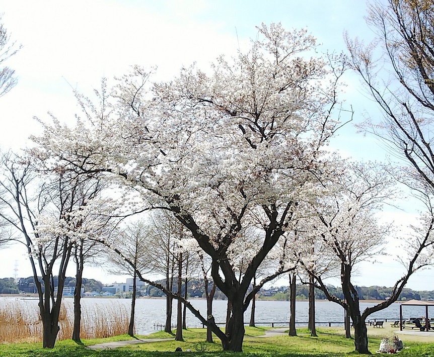 我孫子市のシンボル的な公園で、沼の水に触れ合うことができるふれあい岸辺や周囲を一望できる公園岬のほか、ミニ鉄道などもあり、子どもから大人まで楽しむことができ、春になると多くの桜が公園を彩ります。