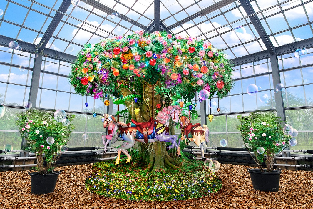 6月12日(日)まで「カラー オブ スプリング」を開催。色彩あふれる春のローズガーデンに、花と鉱物のメリーゴーランド「ブリリアント ツリー」が初登場。リザーブド ローズテーブルでは現役で活躍する夢をもった若手声優や劇団員たちが、お茶会に参加したゲストをエスコートします。1,600品種、10,000株のバラの世界と心地よい開放感に包まれ極上のひとときをお過ごしいただけます。