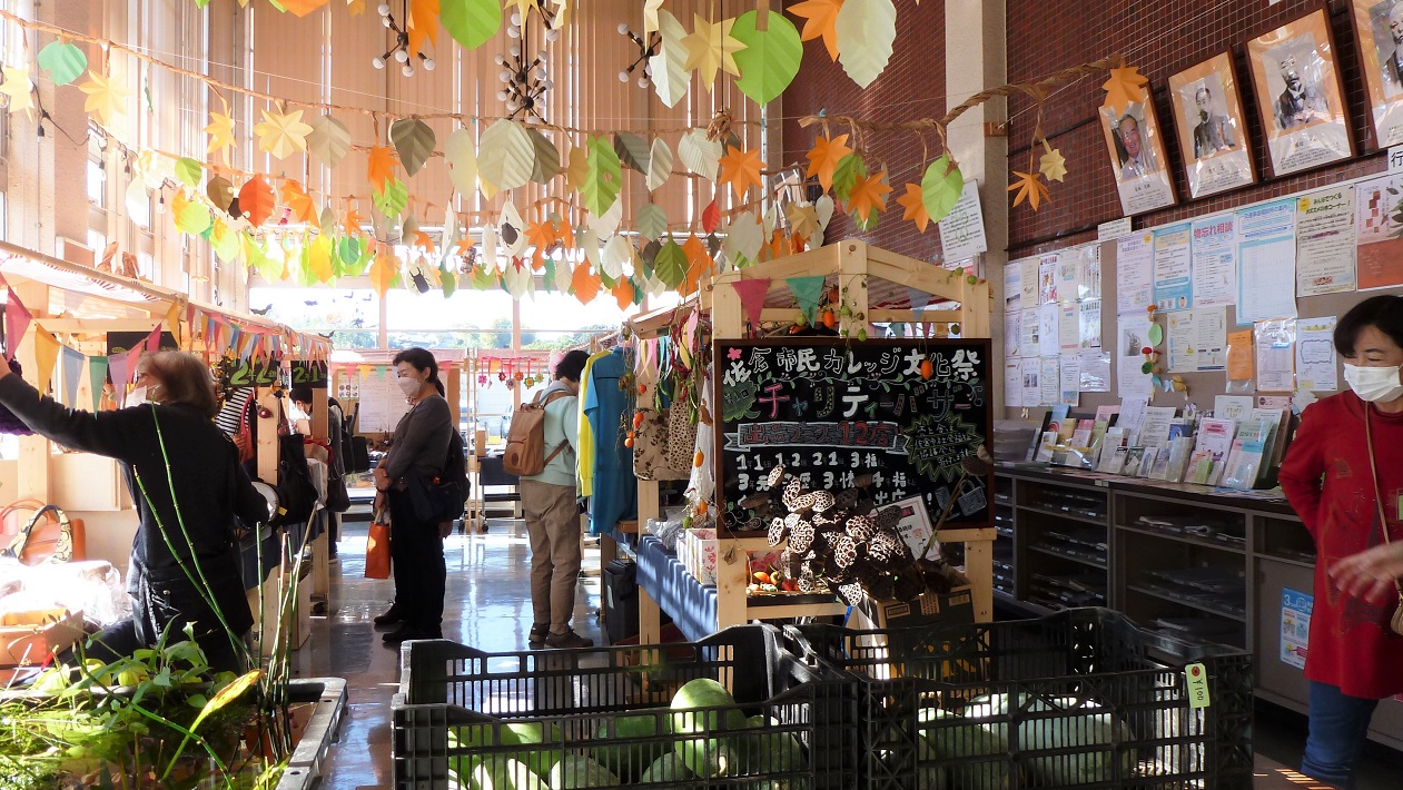 ロビーではカレッジ生の自宅に眠っていた物や制作物、農産物を販売するチャリティーバザーも開催され、売り上げは佐倉市社会福祉協議会に全額寄付されました。