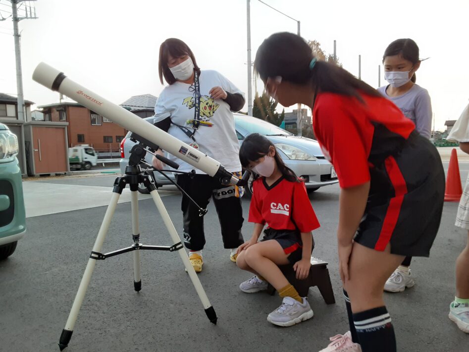 小学校の広いグラウンドに併設する敷地で子どもたちはスポーツや天体観測を、室内では手芸などを楽しんでいます。