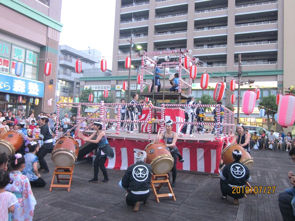 東口では、ウッドデッキにやぐらを設置して盆踊りが行われ、ロータリー内のステージでは、鎌ケ谷市立第四中学校の吹奏楽部や和太鼓の演奏などが披露されます。