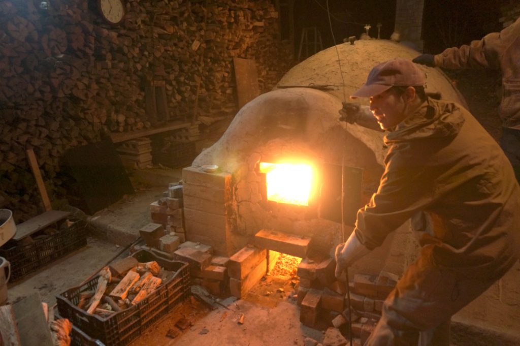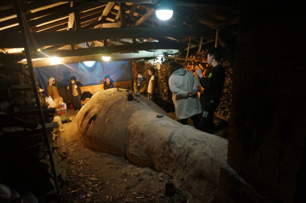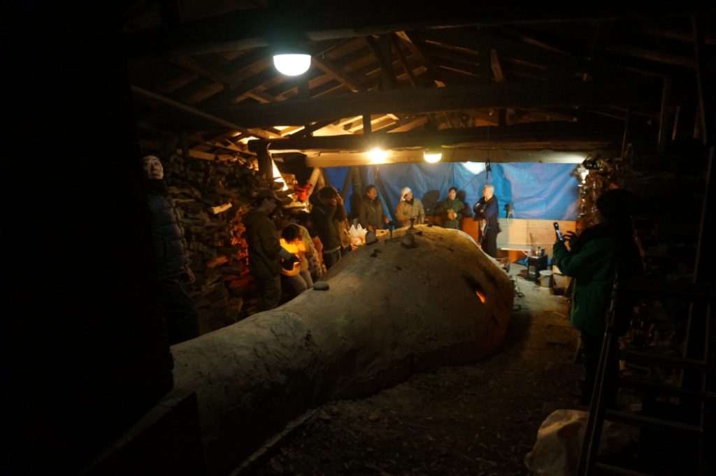 3月、ワークショップの作品を焼成するための窯焼きにお邪魔しました。三日三晩火を燃やし続けるため、数人が交代で火の番をし、まきをくべたり、酸素を送ったりして火加減を調整します。