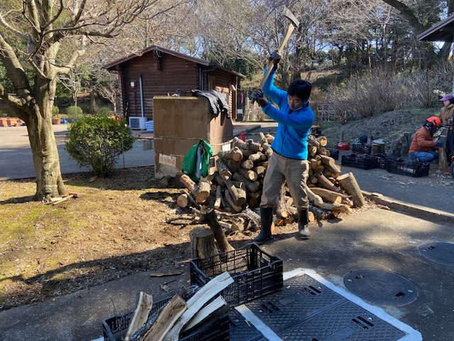 有志の手で、ひび割れの修復作業やまき集め、まき割りなどの作業を実施