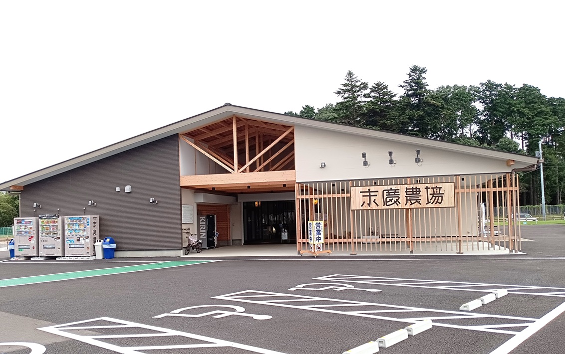 「末廣(すえひろ)農場」内の物販エリアには地元の新鮮野菜や富里産の房総ポークを使ったハムやベーコンなどの加工品、旧末廣農場の流れをくむ堀江ファームとコラボしたオリジナル商品などが所狭しと並んでいます。