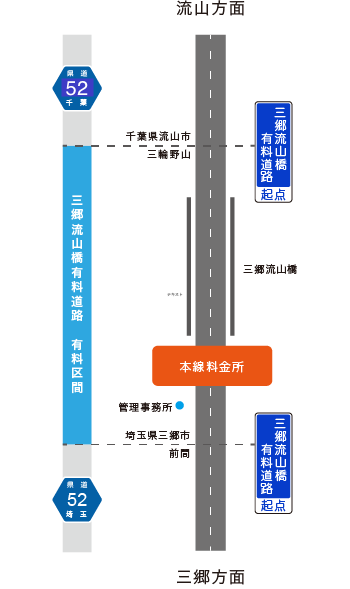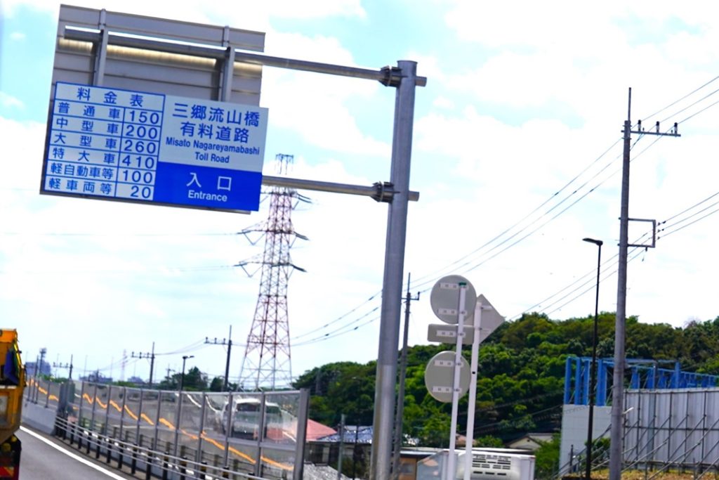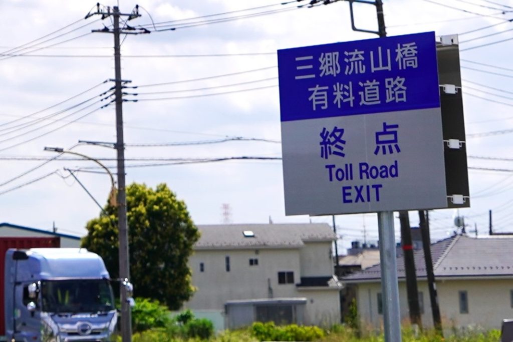 流山側も三郷側も有料道路の入り口は江戸川に一番近い道路ではなく、「千葉県流山市三輪野山」と「埼玉県三郷市前間」なので、江戸川側まで行き過ぎてしまうと迂回(うかい)しなければならない可能性があります。