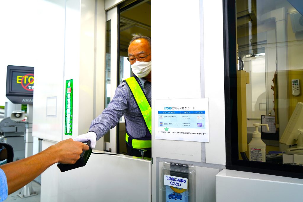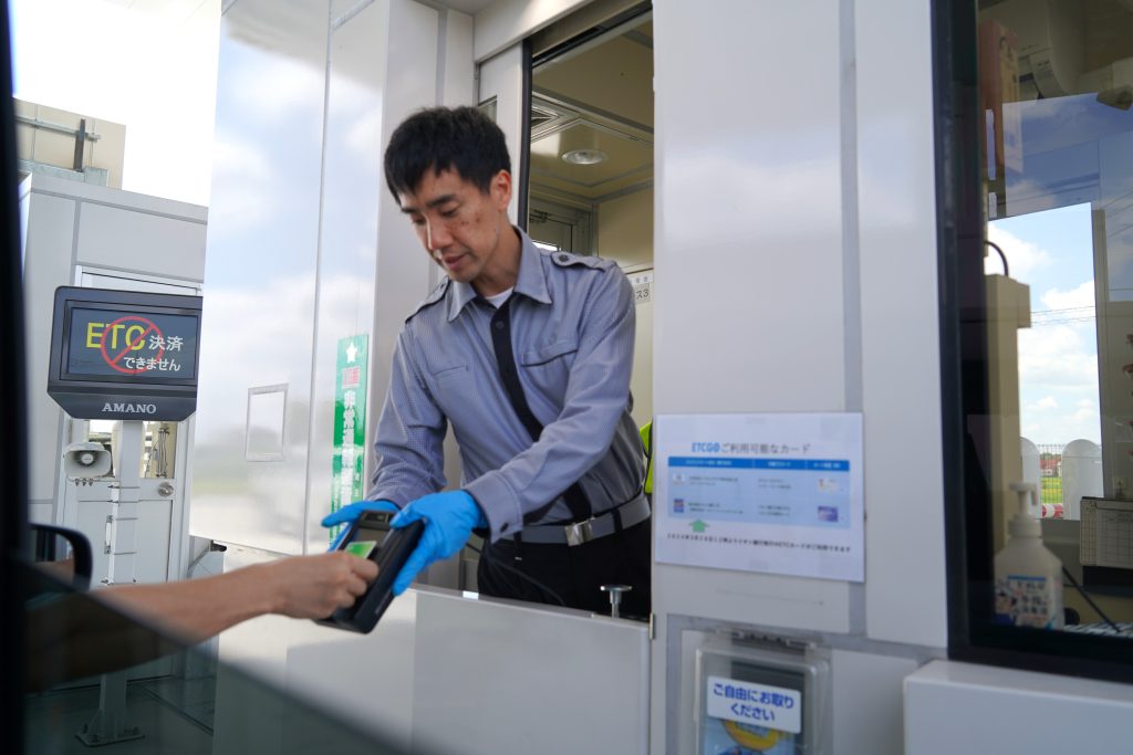 料金所のスタッフから差し出されたハンディターミナルにカードをかざして決済完了です。