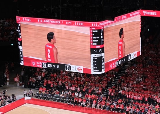 センタービジョンには各選手の得点やファウルの数まで表示されて分かりやすい