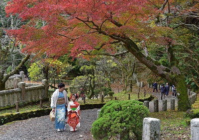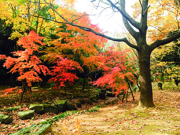 およそ500本のイロハモミジが美しく染まるその景色は見事。11月23日(土・祝)~12月8日(日)には観賞会が開かれ、普段立ち入ることができない園内に入ることができるので、この機会に訪れてみては。