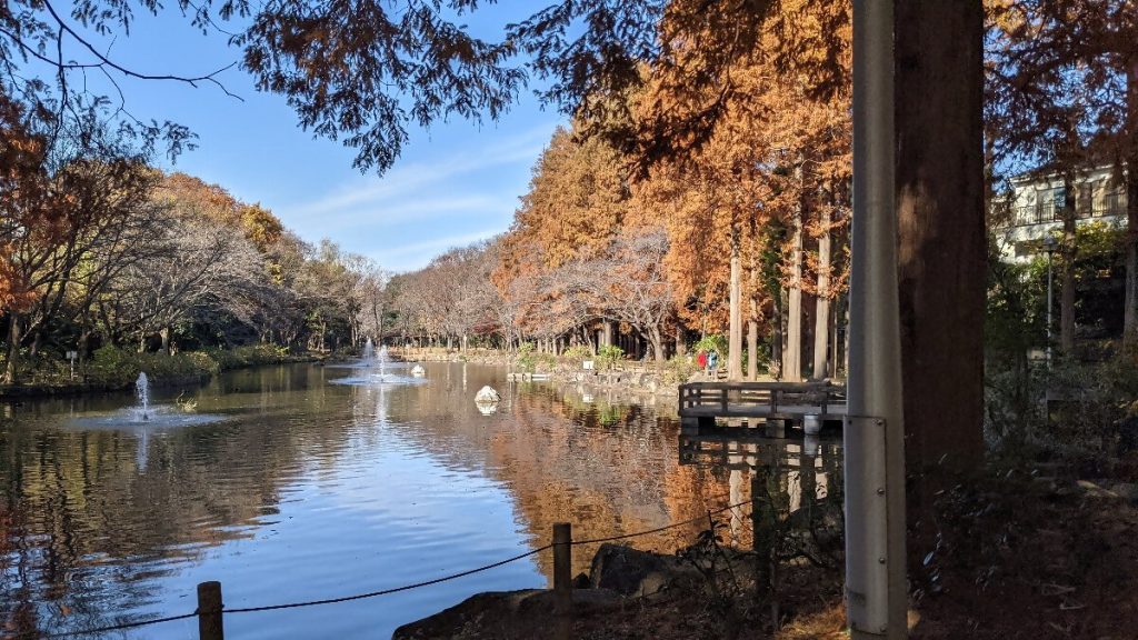モミジバフウやカエデ、イチョウ、メタセコイアが鮮やかに色づき、訪れる人の目を楽しませてくれます。また3月~11月の土日祝限定でスワンボート(有料)に乗ることができ、10月にはオータムフェスタが開催、さらにバラ園も開園。