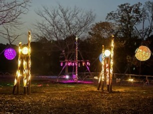 手賀沼周辺の竹林整備で間伐した竹を用いて作られた、500本以上の美しい竹灯籠やオブジェが必見。