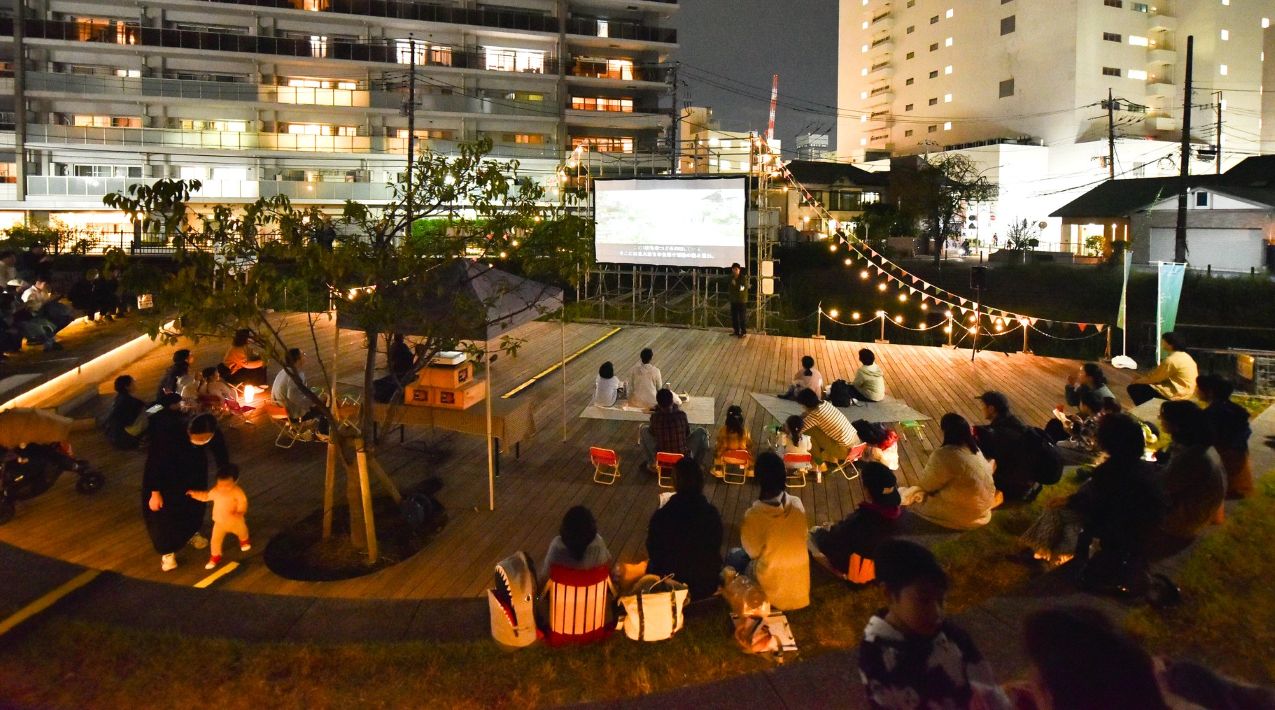 10月末には、かつて松戸にあった映画館「松戸輝竜会館」の記憶を呼び起こし、親子で楽しむ野外映画祭「坂川ながるるシネマ」、まちの本屋さんなどが集まる「坂川ながるるブックマーケット」が行われました。