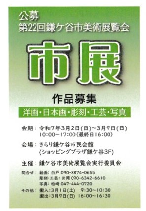 3月2日(日)から9日(日)まで、鎌ケ谷市美術展覧会(市展)が開催されます。
