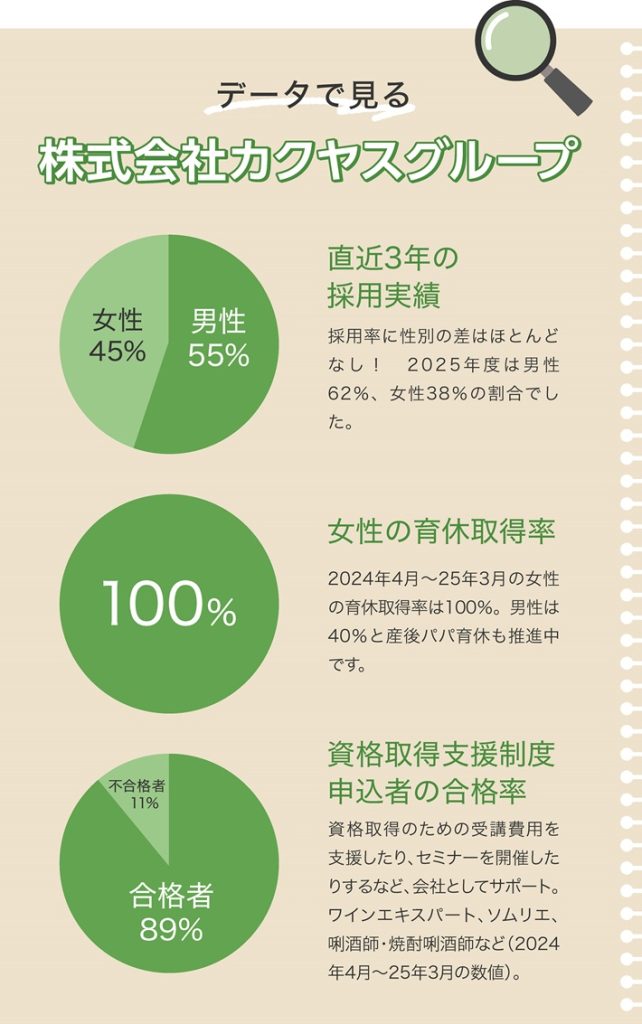 「資格試験へのサポートや、国内外の酒蔵やワイナリー、ビール工場への派遣研修があり、社員の成長欲求に応えてくれる制度や文化で成長を実感できます。ソムリエ・唎酒師・ウイスキーエキスパートといった資格試験にチャレンジでき、合格すると特別休暇や奨励金がもらえる点もうれしいですね」