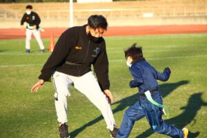 ジャンプして大喜び、ステージで大熊選手と涙を流して抱き合ったその少年は、ラグビー経験1年の菅原維吹(すがはらいぶき)君(8)。