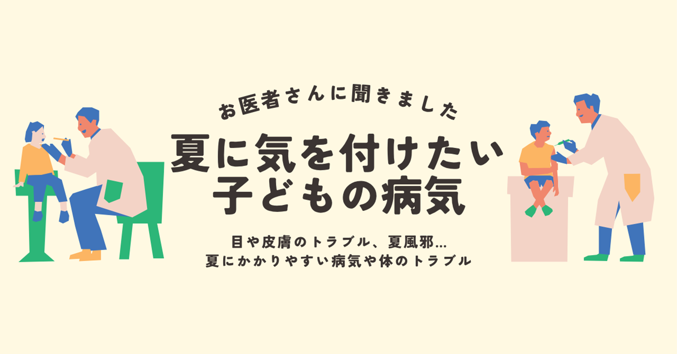 真夏の暑さによる皮膚トラブルや熱中症。森や海、プールなど外出先で注意したい病気やケガ。夏に起こりがちな子どものトラブルについて、4人の専門医が解説。さらに、知っておきたいママ(女性)の体についても婦人科の先生にお話しいただきました。