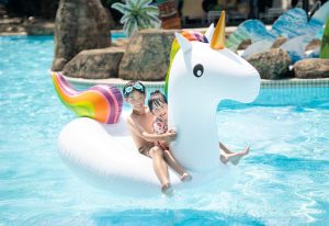 1周170mの流水プールに加え、水深40~50cmと水深50~60cmの2種類の子ども用プールでは、浮き輪はもちろんフロートやビーチボールの持ち込みもOK。