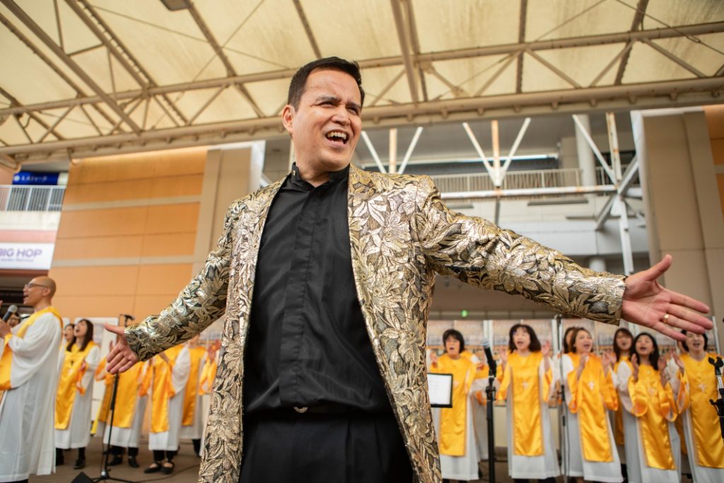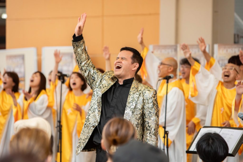 3千人規模のクワイア(聖歌隊)で頭角を表し、いまも日米でプロシンガーとして活躍しています。