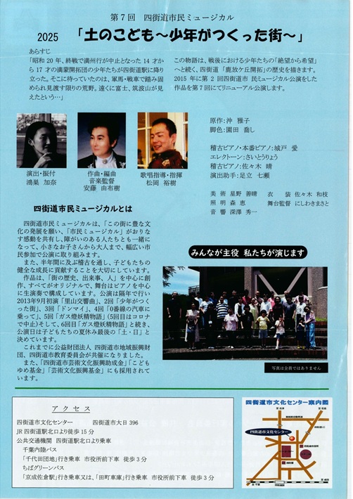 2015年に公演した沖雅子さん原作の「少年がつくった街」を、前回の作品をリニューアルして上演します。