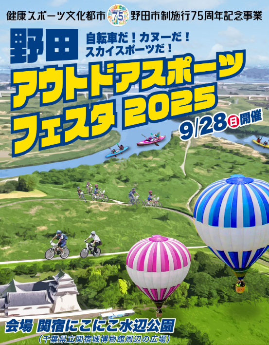 カヌー、自転車、スカイスポーツのアウトドアスポーツ3団体が一堂に会し、野田の自然・文化・歴史を体感できるイベントです。