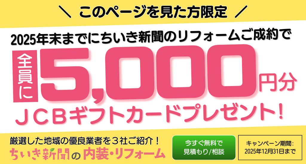 2025年12月31日(水)までに、当社(地域新聞社)窓口からお見積り、ご成約いただいた方全員にJCBギフトカード 5,000円分もれなくプレゼント!