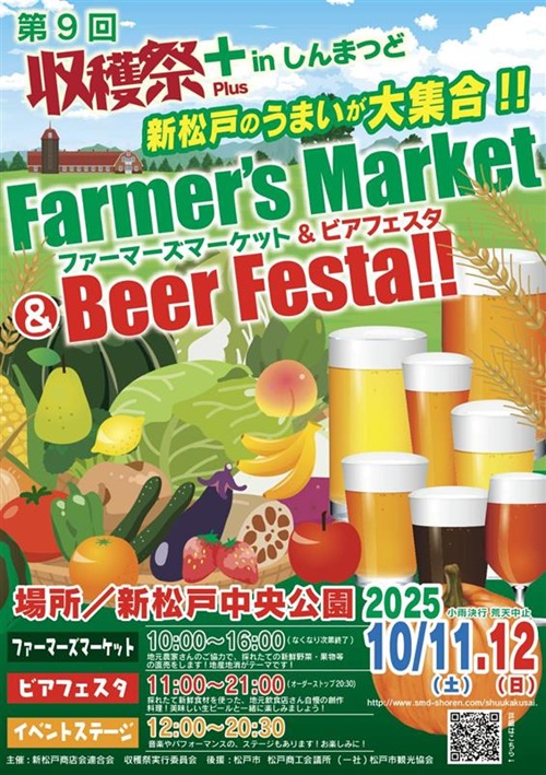 地元農家による採れたての地場野菜や果物、加工食品を直売する「ファーマーズマーケット」と、新松戸を中心とした飲食店27軒がそれらの新鮮な地元食材をふんだんに用いて作る創作料理と、世界のビール25種類が味わえる「ビアフェスタ」のコラボイベント。