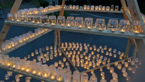 記念展示のテントでは、展示パネルで町の変遷を振り返ることができます。