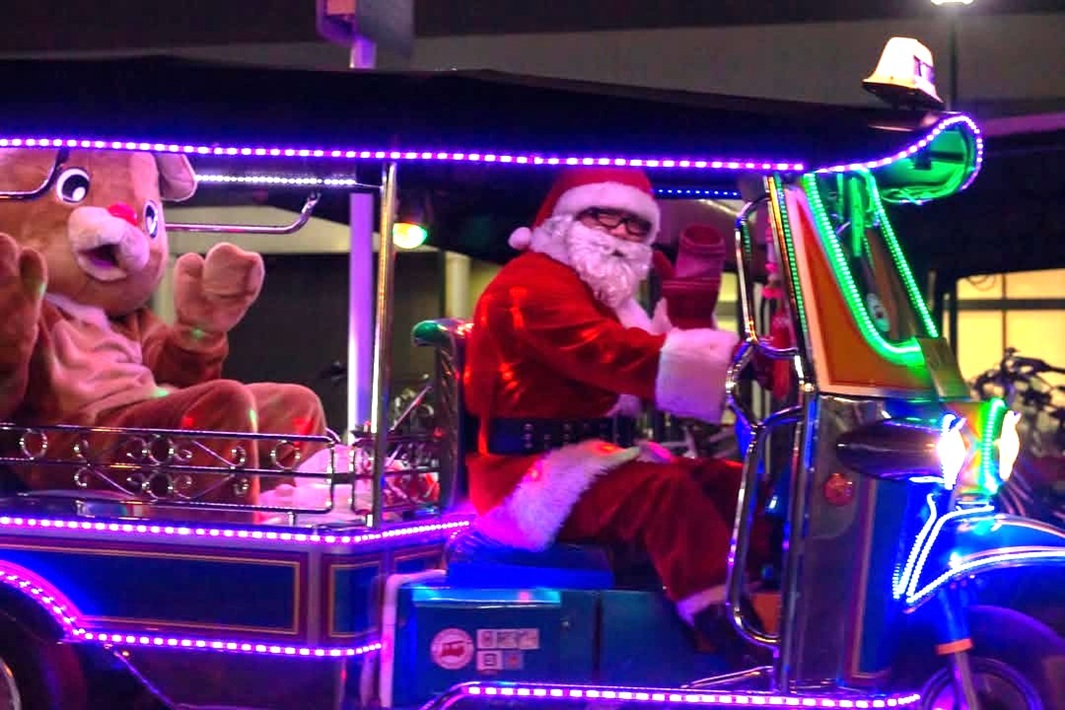 12月、富津の街にそりをタイの三輪自動車・トゥクトゥクに乗り替えた「トゥクトゥクサンタ」が訪れます。