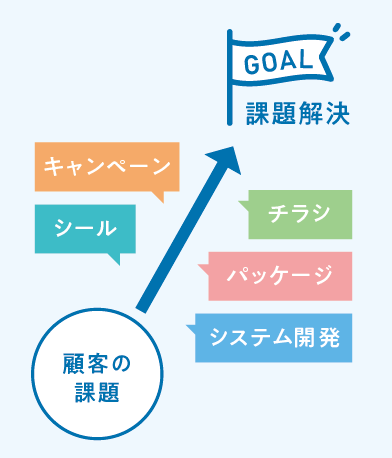製品やサービスの魅力を消費者に伝えるために、広告宣伝物や販促物を企画・提案し、取引先のビジネスをサポートします。