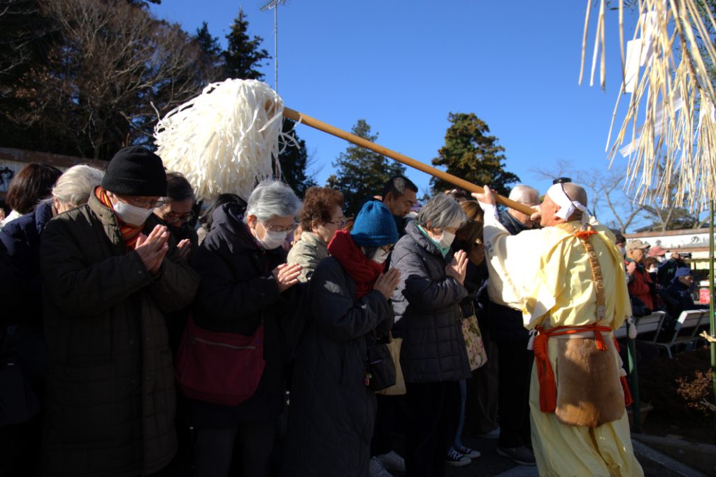 山伏装束を身にまとった20人ほどの僧侶が、厳かに儀式を執り行います。