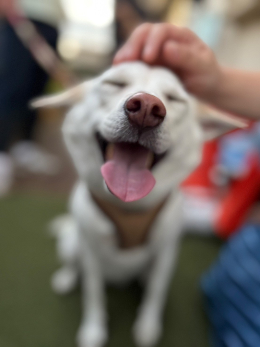 大好きなおばあちゃんのお家に遊びに行った時、おばあちゃんになでてもらって幸せでとろけそうな顔になっていました。